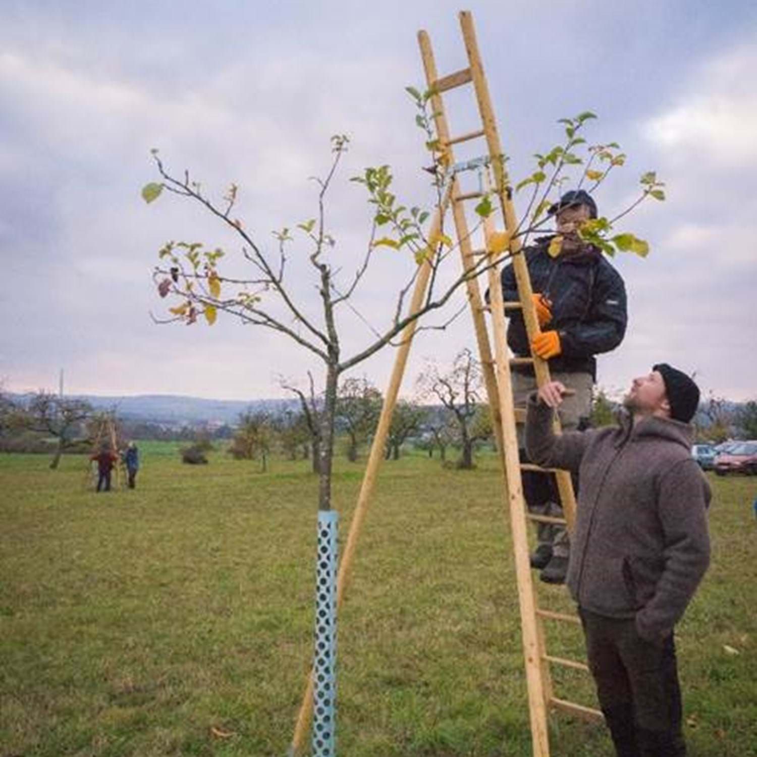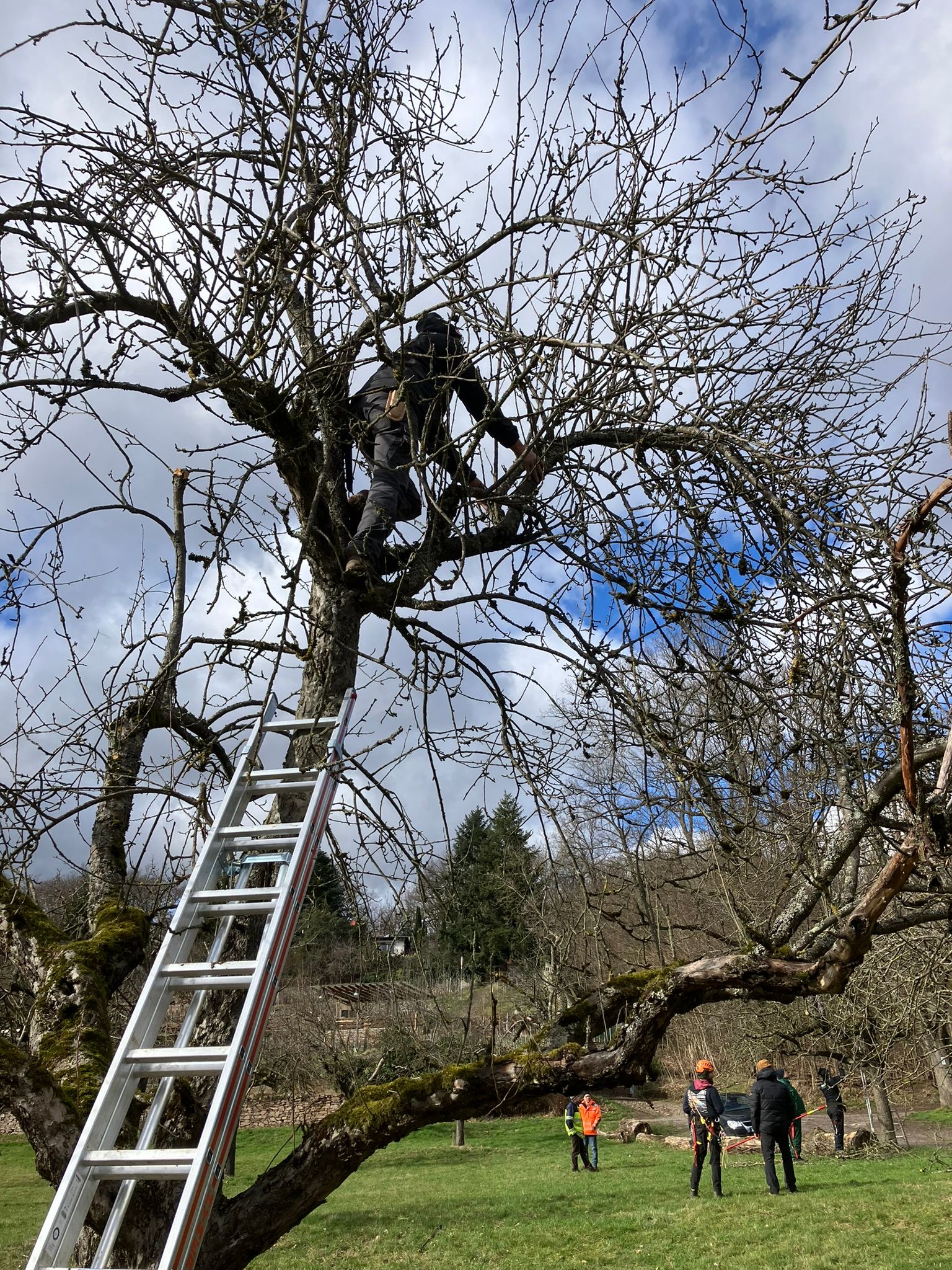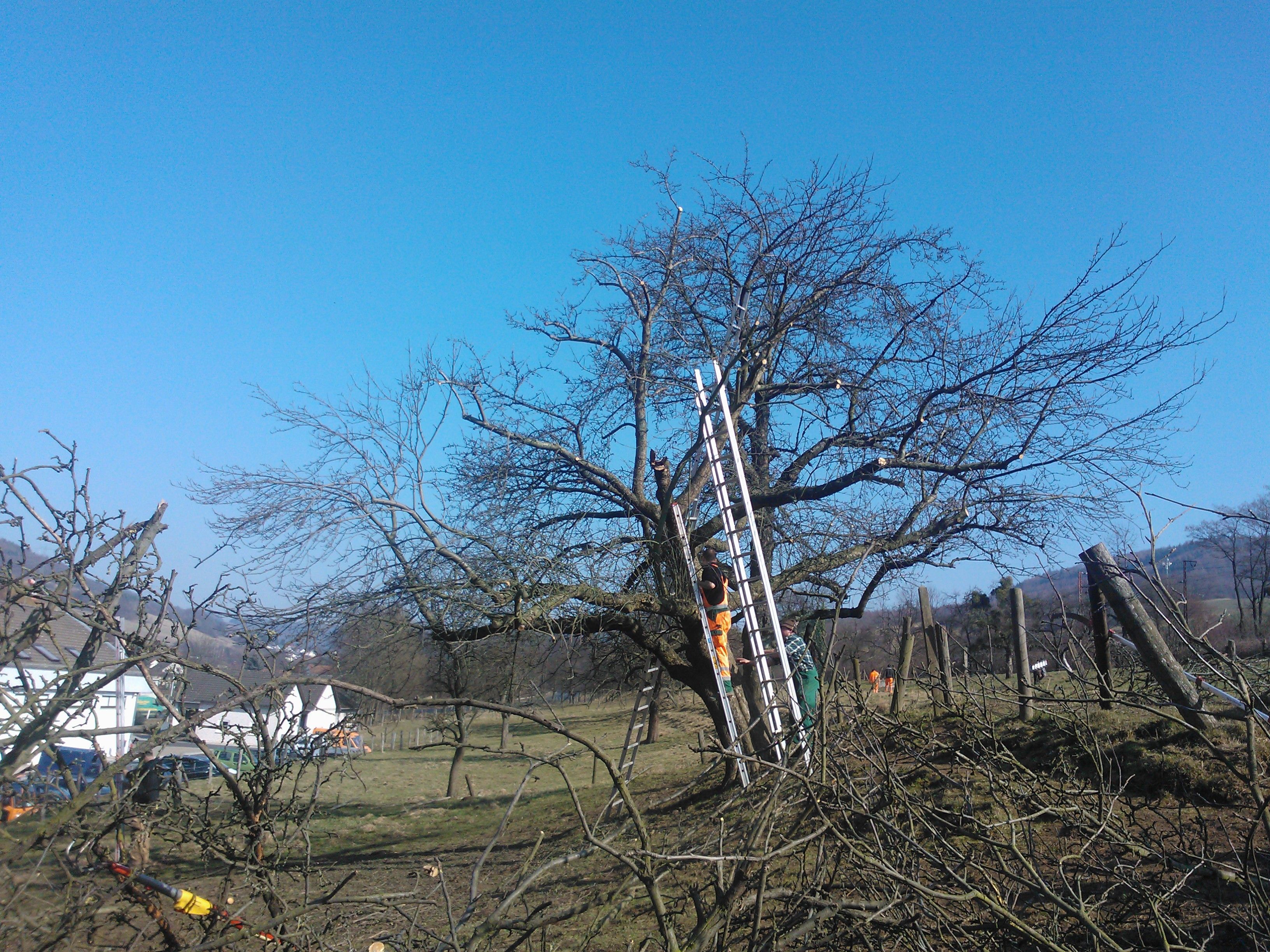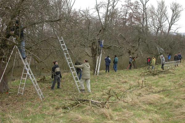 Alle ehemaligen Kursteilnehmer der Schlaraffenburger Baumwartausbildung können in diesem Praxistag unter Anleitung ihr praktisches Können auffrischen.